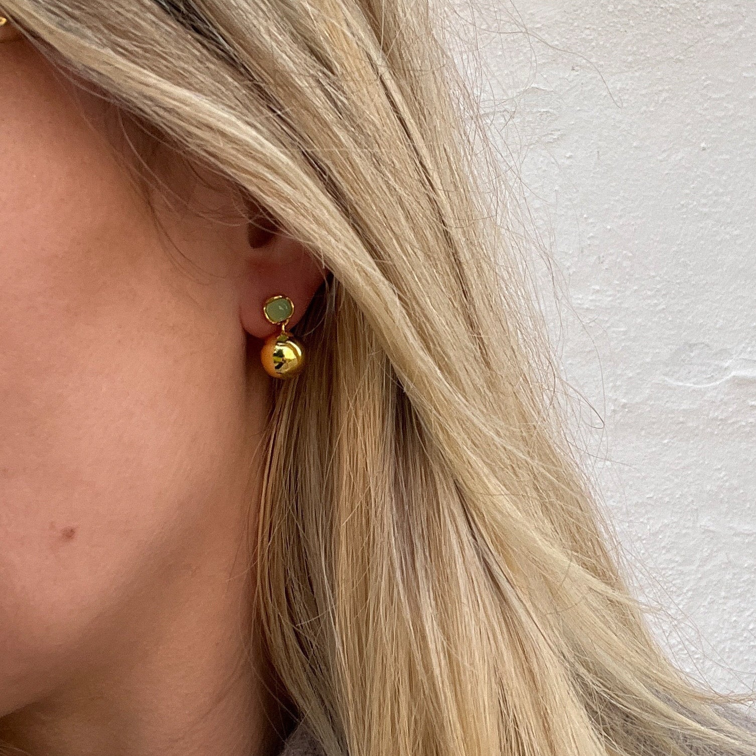 Glory øreringe i 18 karat guldbelagt sølv med aqua kalcedon og kugle
