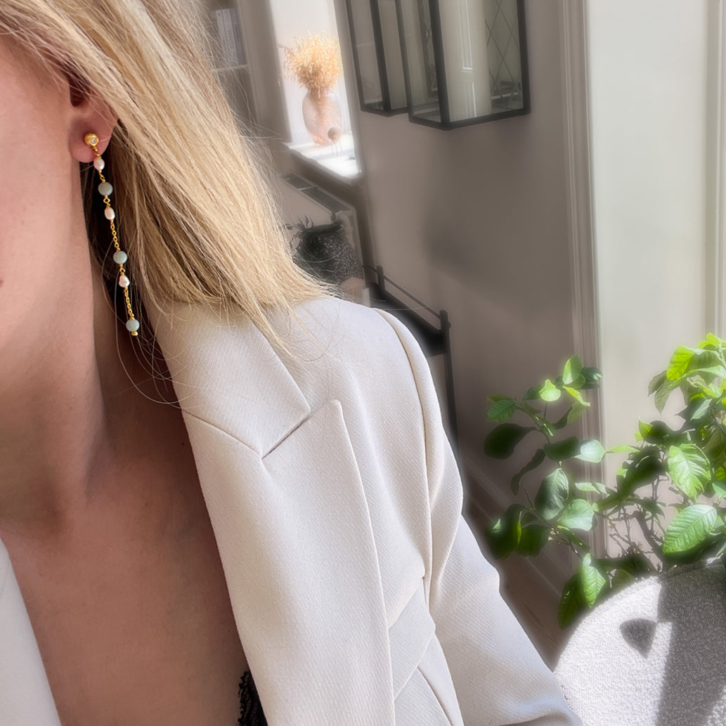 Allure kæde øreringe i 925 sterlingsølv med regnbue månesten, ferskvandsperle og zirkonia.