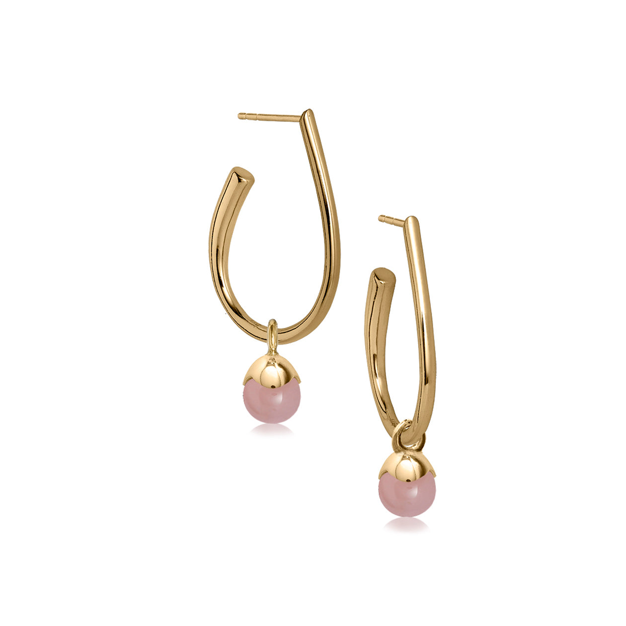 Glory øreringe i 18 karat forgyldt 925 sterlingsølv med rosa kalcedon. De elegante øreringe findes i to størrelser og har et klassisk og lækkert udtryk. Vi har lavet dem som en ørestik, så de er utrolig behagelig at have på. Alle ædelstenene er naturskabte, og smykket er håndlavet af vores dygtige guldsmede.