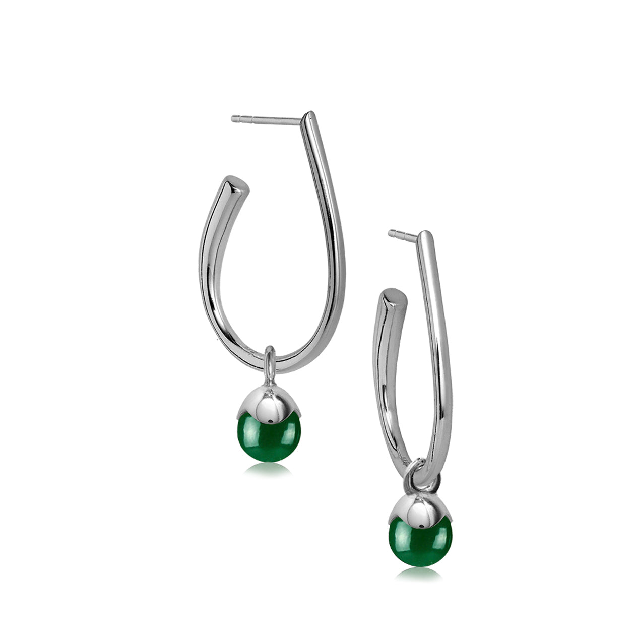 Glory øreringe i 925 sterlingsølv med grøn onyx. De elegante øreringe findes i to størrelser og har et klassisk og lækkert udtryk. Vi har lavet dem som en ørestik, så de er utrolig behagelig at have på. Alle ædelstenene er naturskabte, og smykket er håndlavet af vores dygtige guldsmede.
