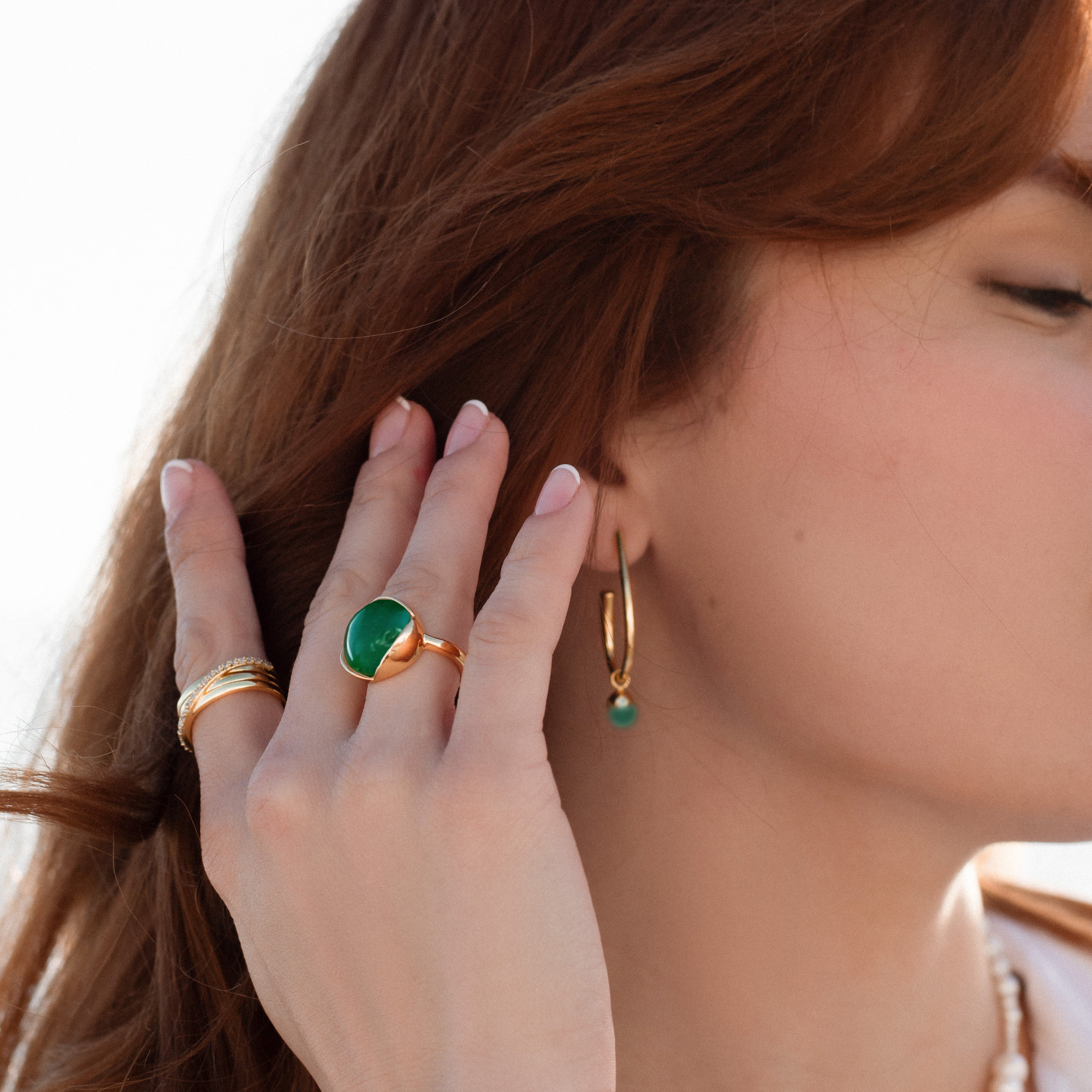 Glory ring stor i 18 karat guldbelagt sølv med grøn onyx