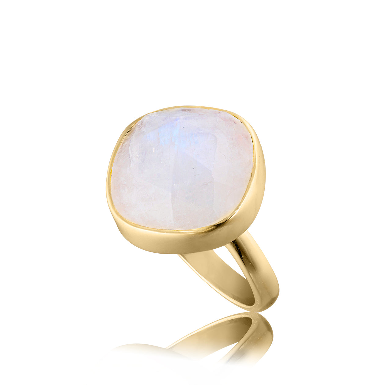 Rainbow ring i 18 karat guldbelagt sølv med regnbue månesten