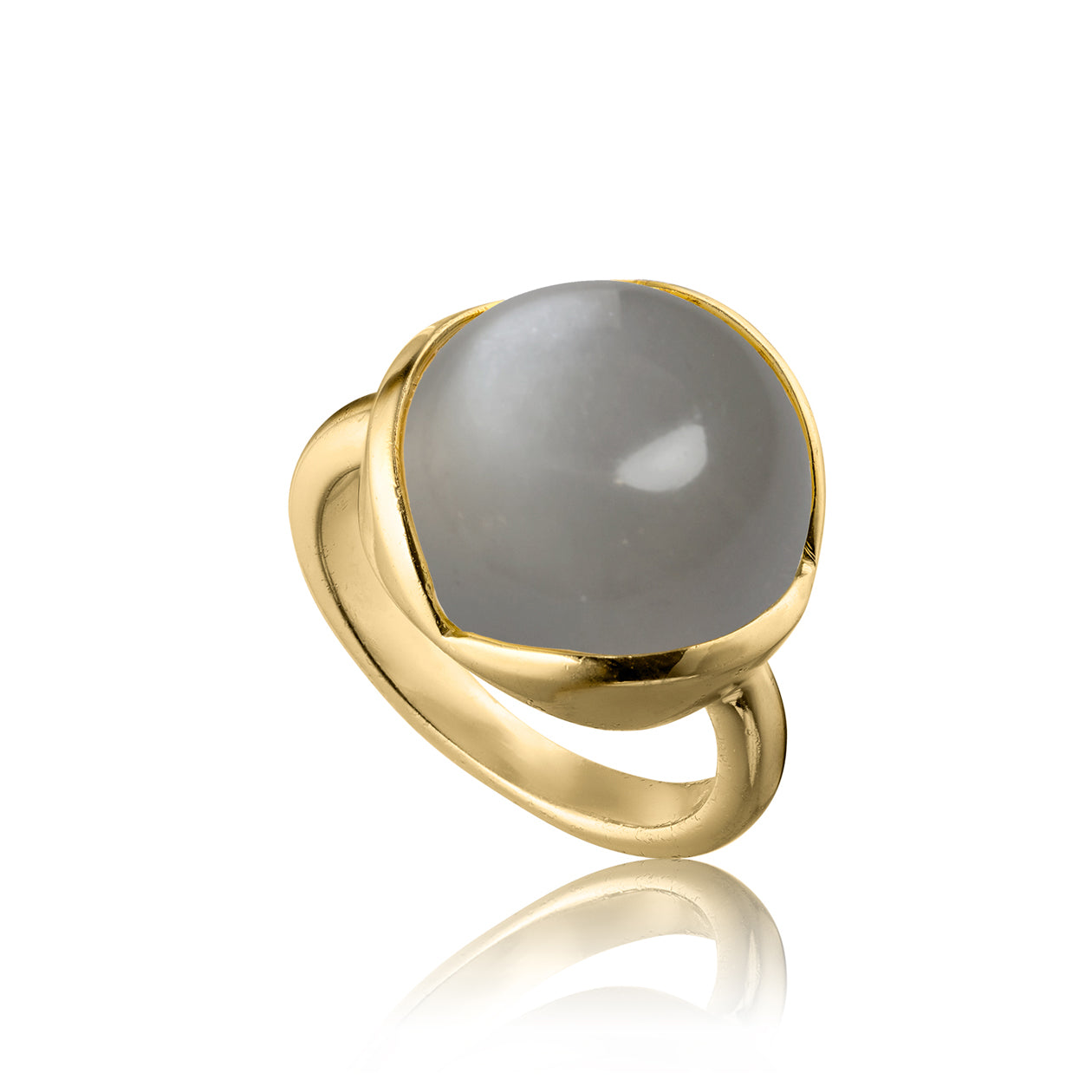 Smuk og klassisk ring i 18 karat forgyldt 925 sterlingsølv med en 15 mm stor grå månesten ædelsten. Ringen har en flot volume og et elegant udtryk med sin store 15 mm sten.