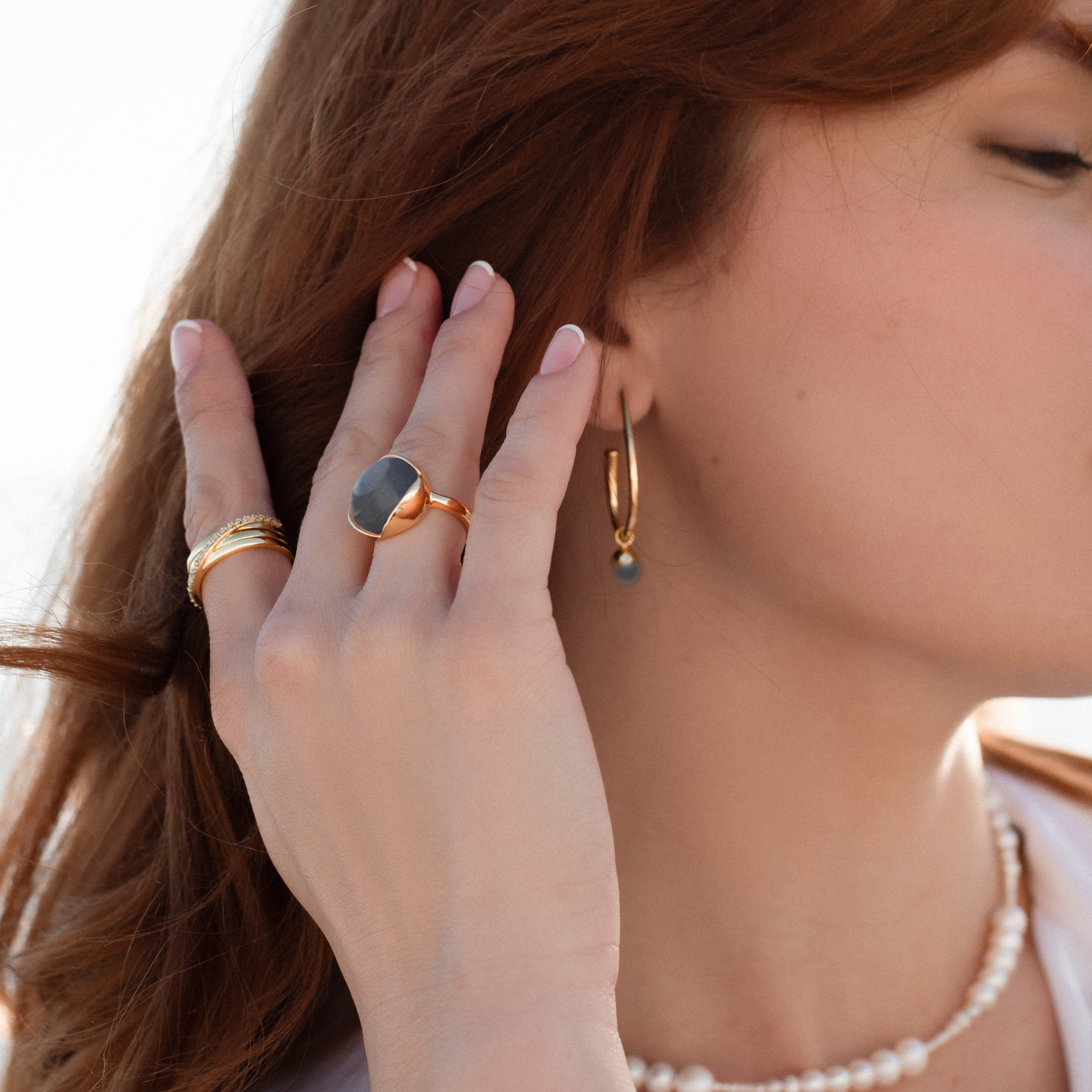 Glory ring stor 18 karat guldbelagt sølv med grå månesten