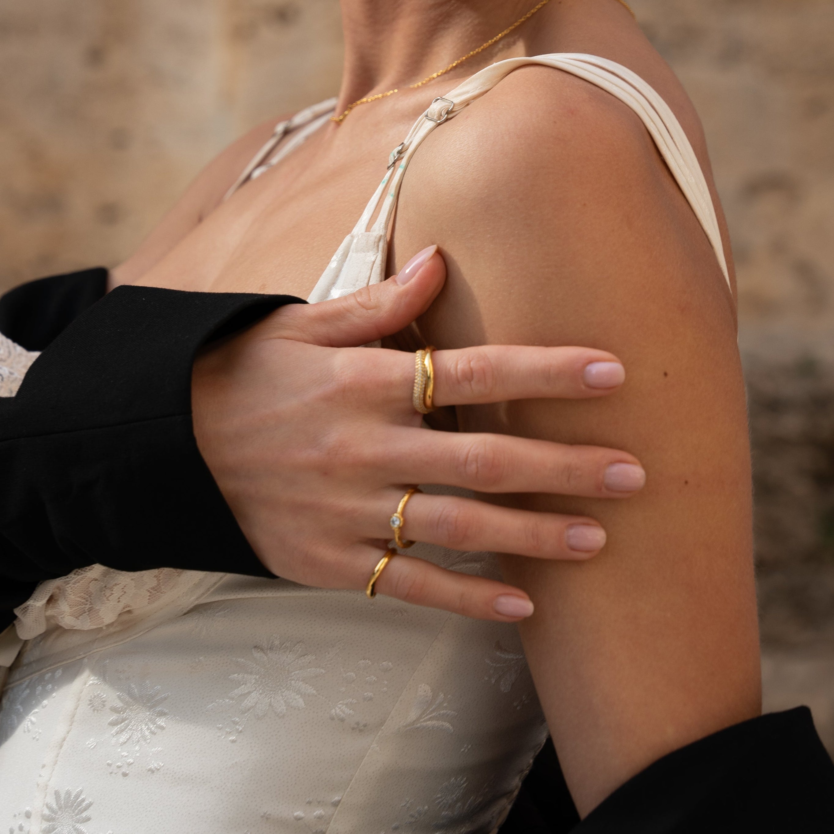 Wave ring i 18 karat forgyldt 925 sterlingsølv med zirkonia.